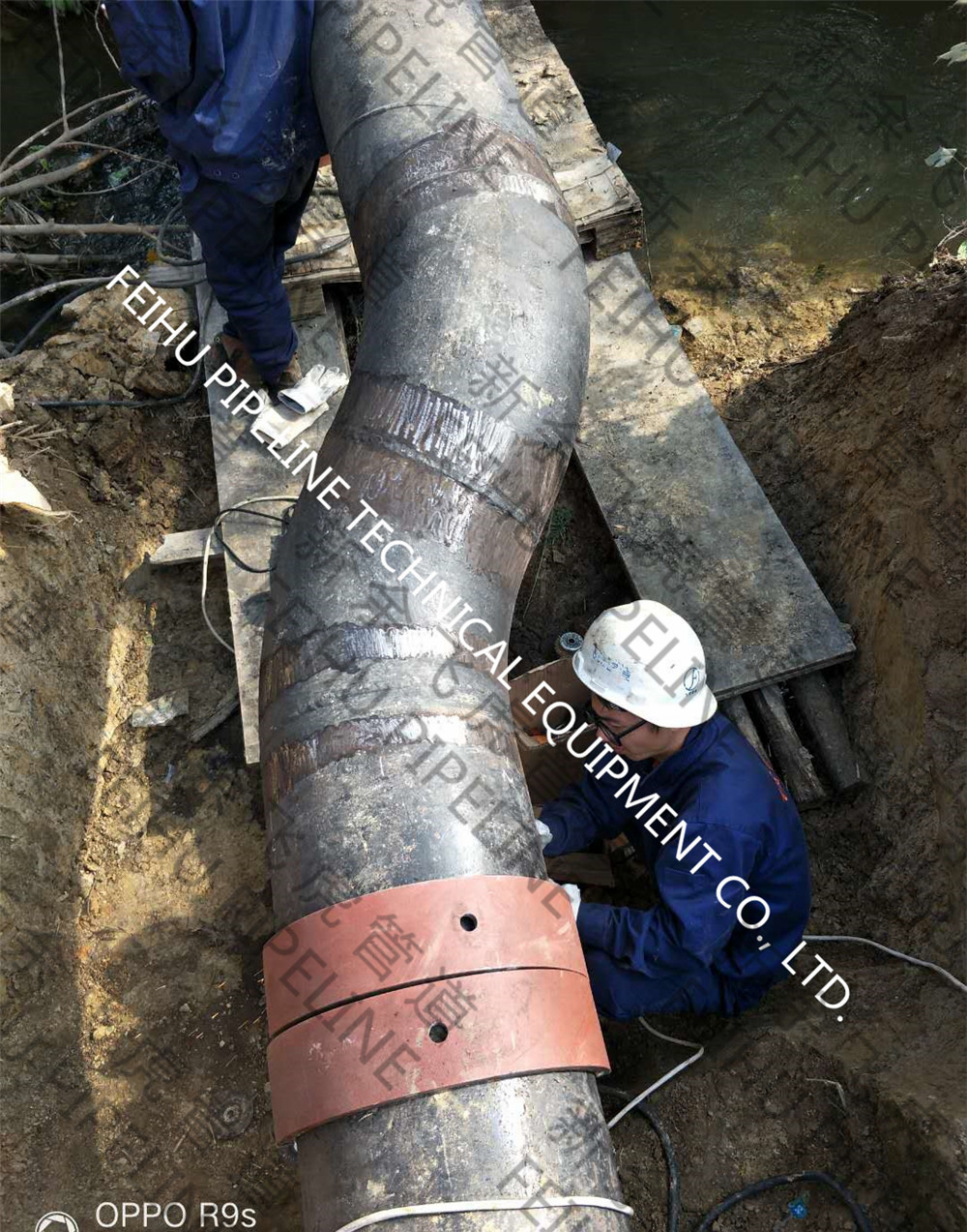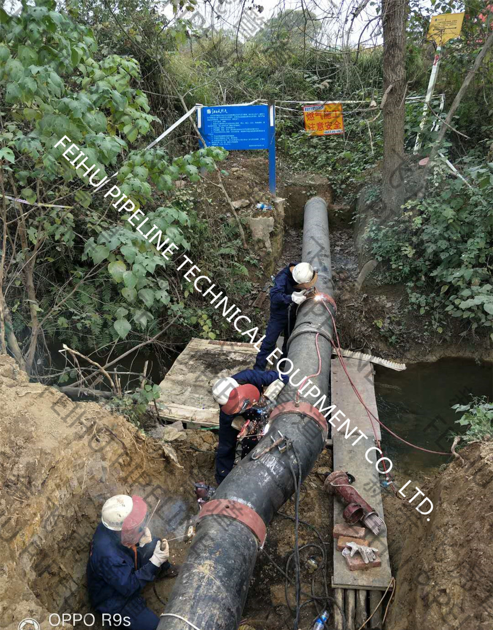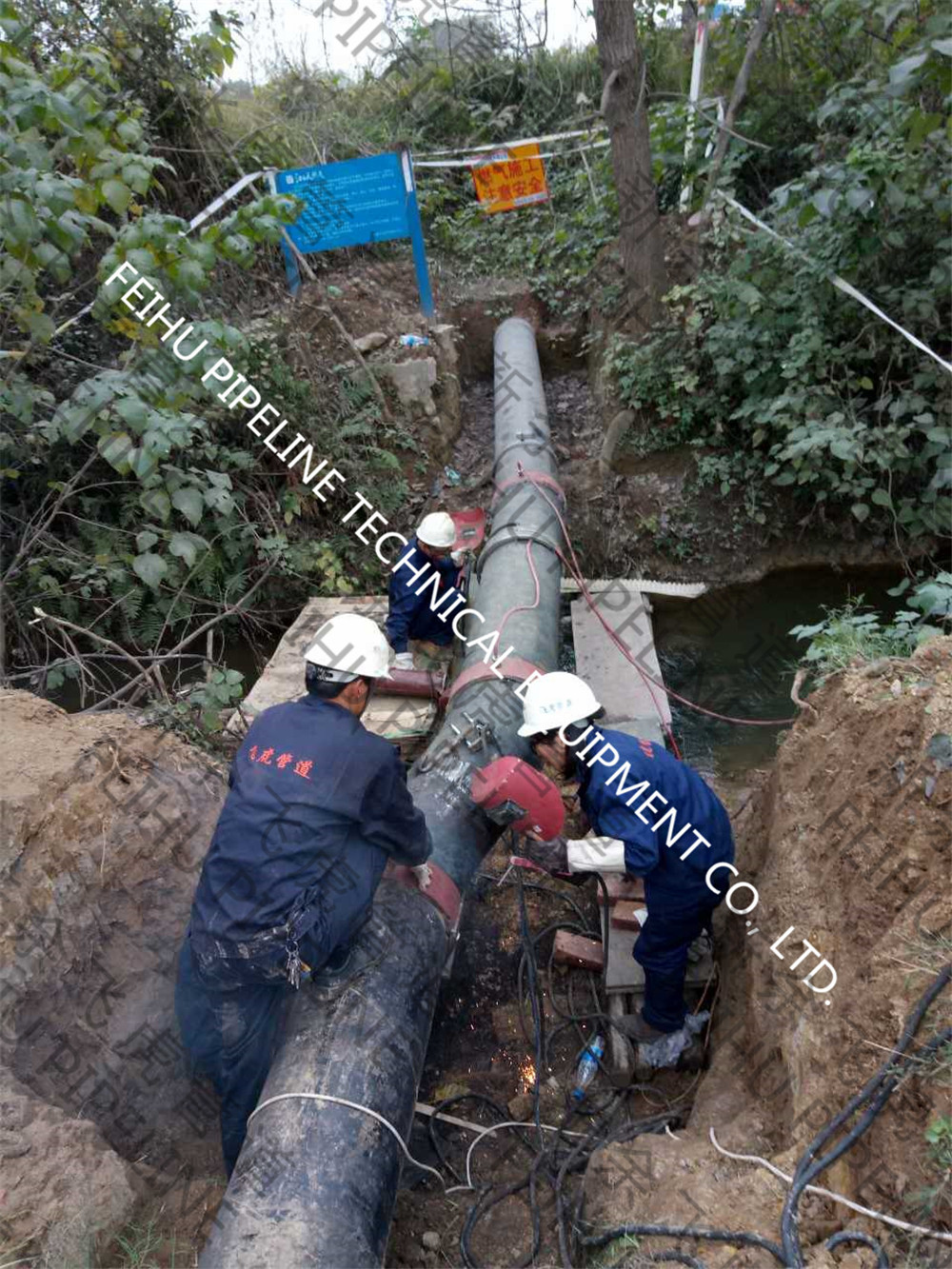 工作内容:DN400天然气管线上带压焊接补强夹具四处,设计压力0.4MPa,运行压力小于0.3MPa。