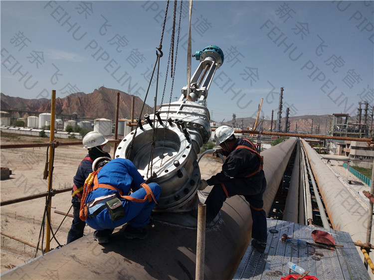 工作内容:在φ1727*12.7mm火炬气管道上不停输带压开孔DN600 一处,管道施工运行压力0.15MPa。