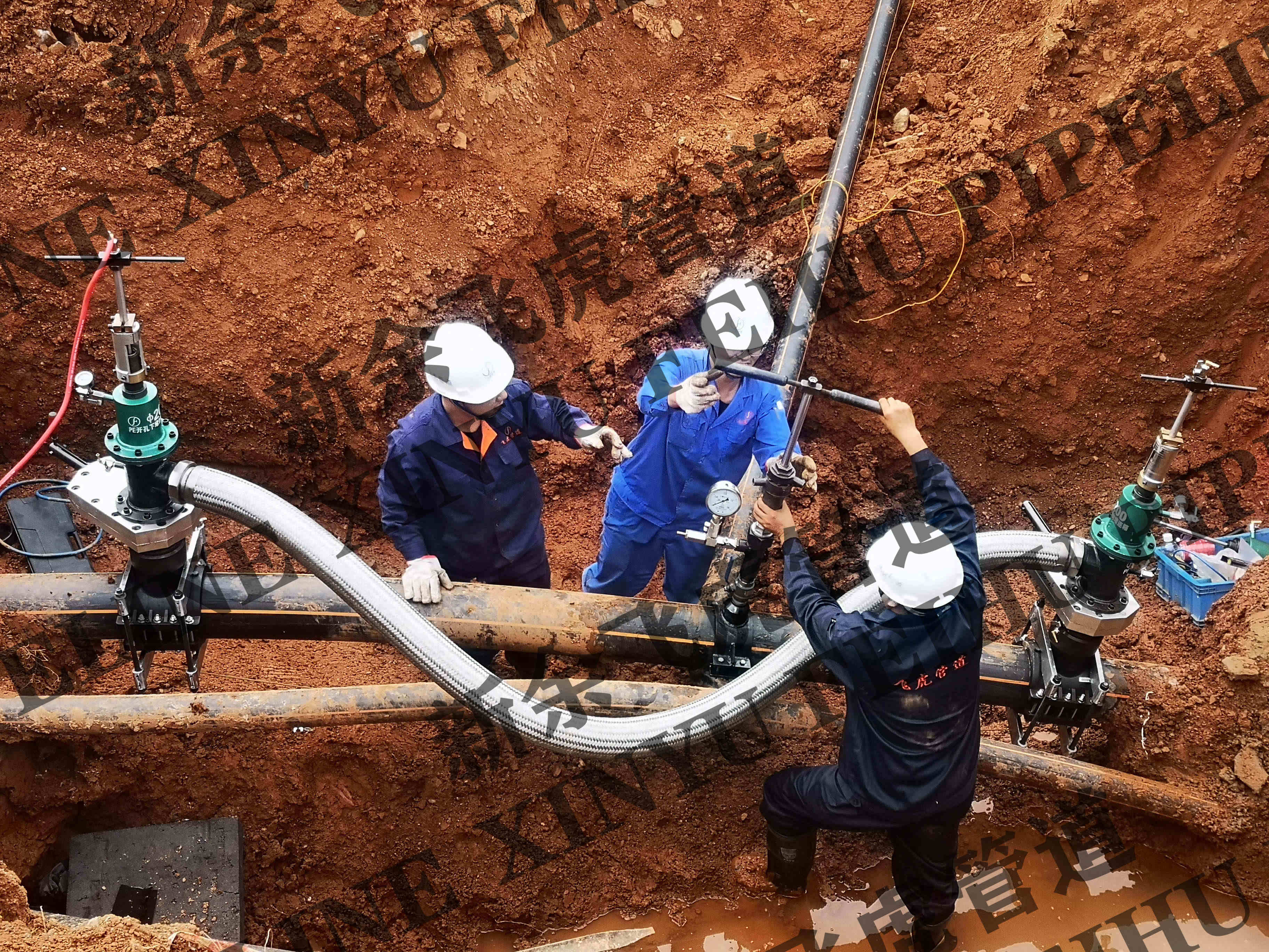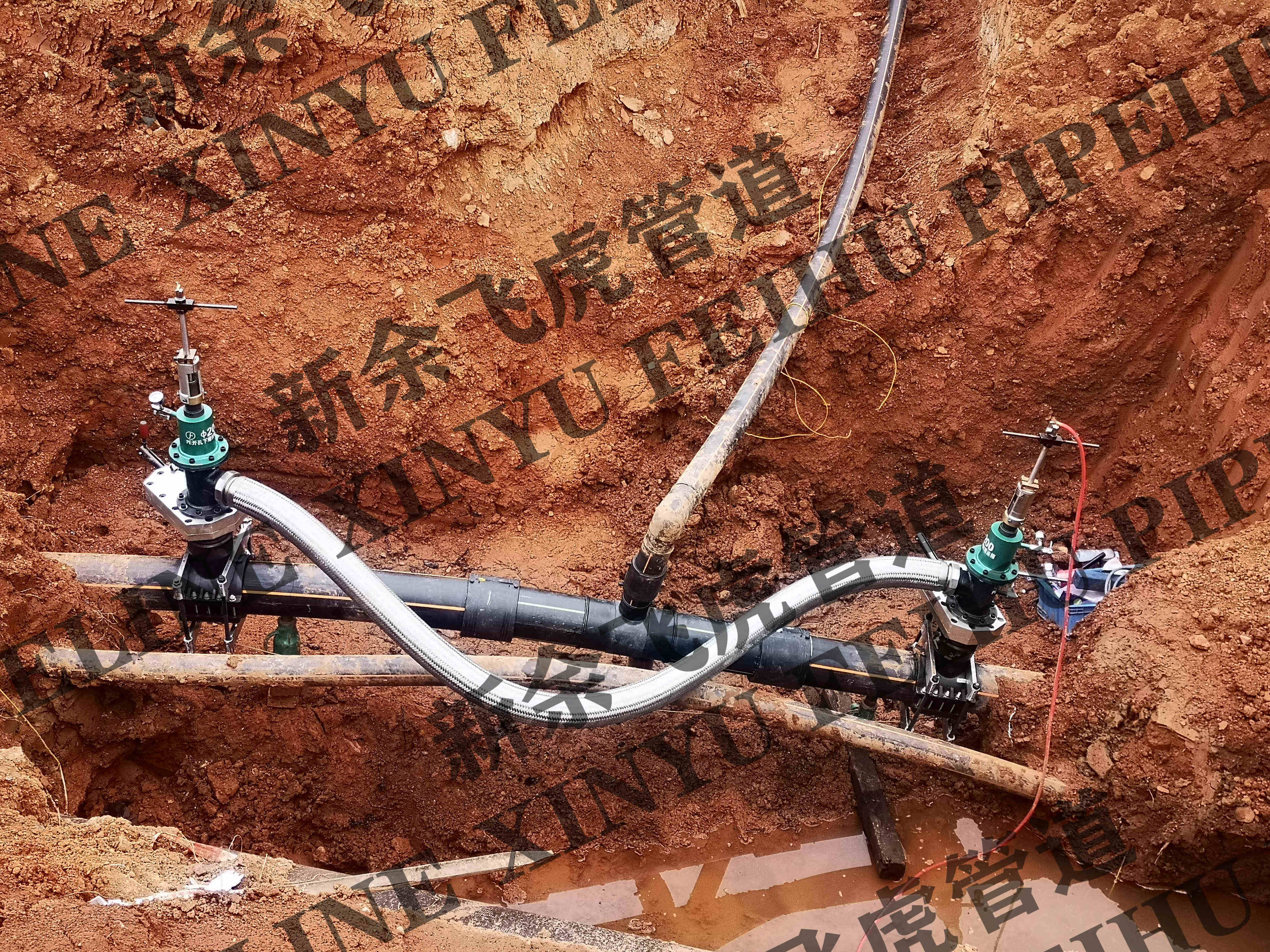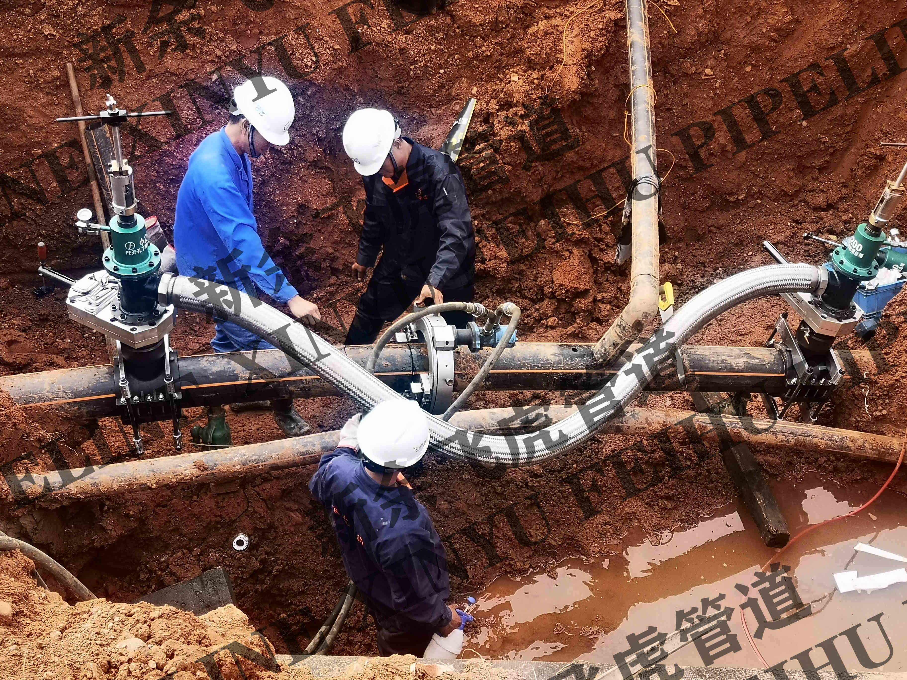 工作内容:对dn200-SDR11天然气管道不停输带压双封双堵一处(管道设计压力:0.4MPa,管道施工压力<0.4MPa)