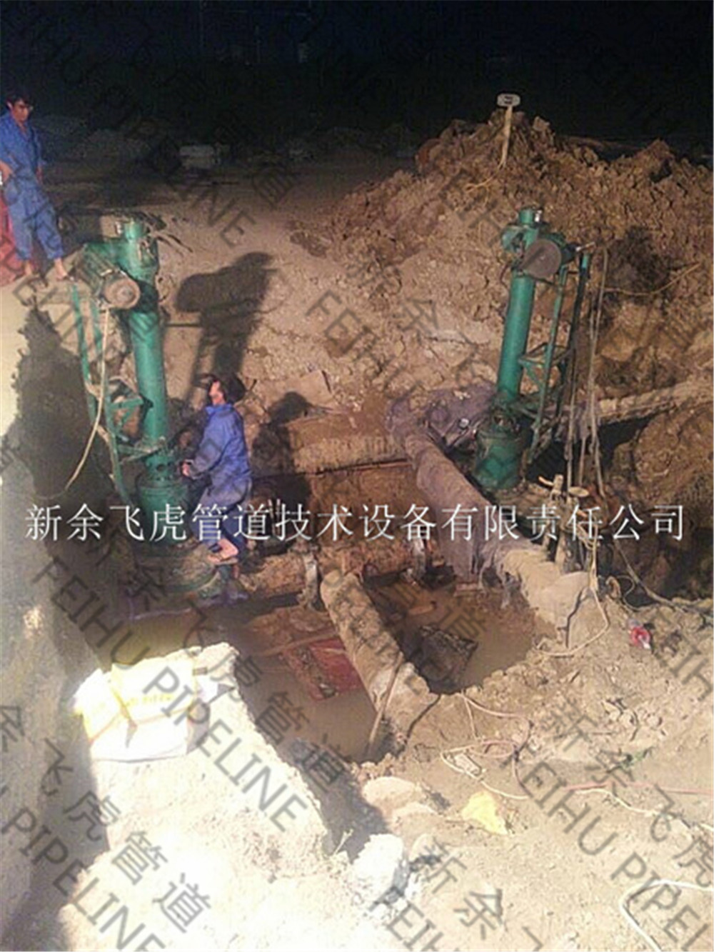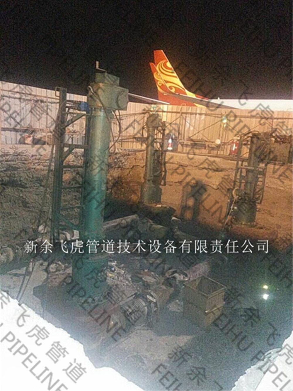 工作内容:在DN350航空煤油管线上不停输带压开孔压封堵更换GD-5、GD-6、GD-7三座阀井内的隔断阀和补偿器;管道设计压力1.6MPa,施工时运行压力小于1.0MPa。