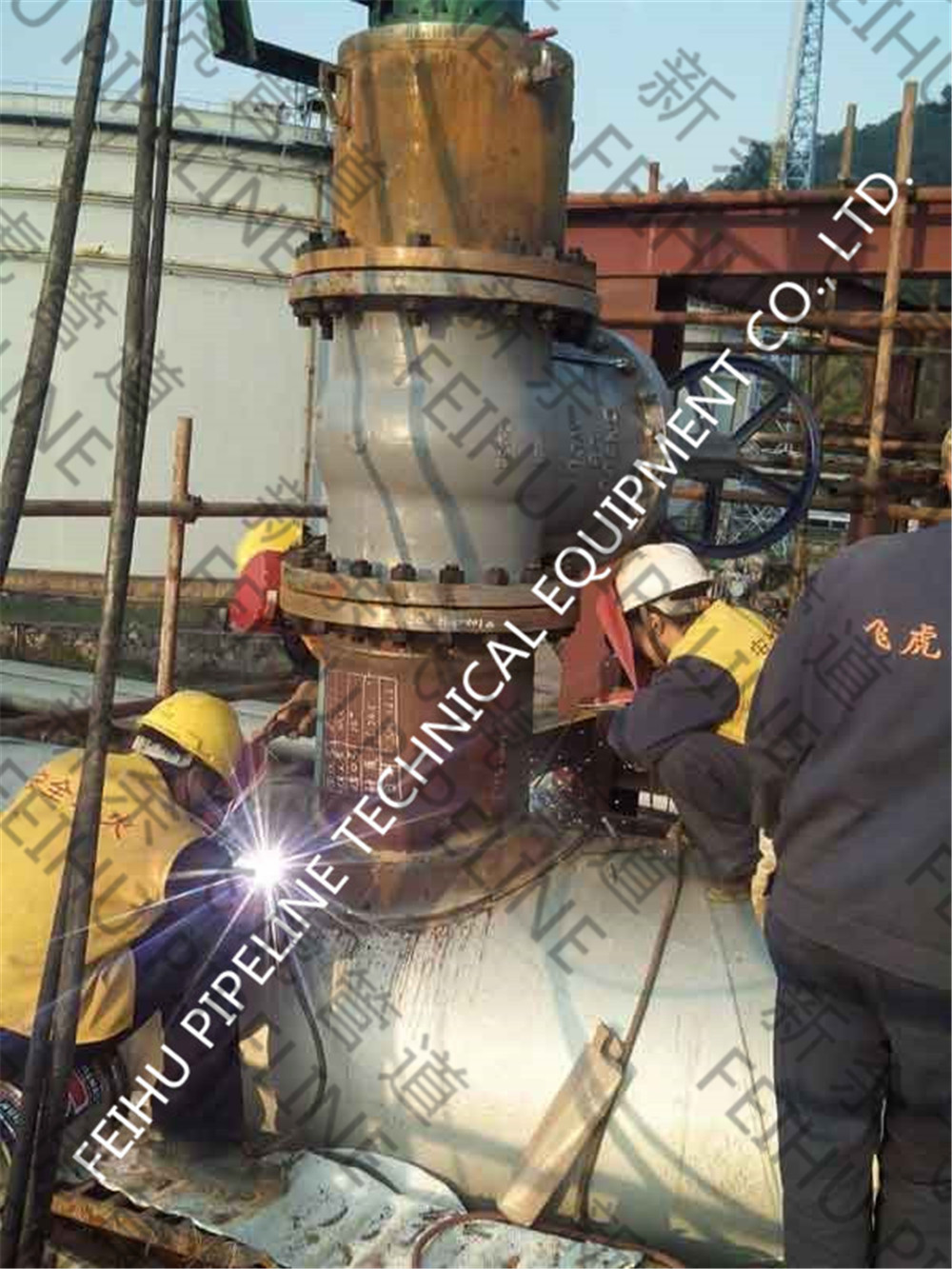 工作范围:在DN1100瓦斯气管线上不停输带压开孔DN500一处;DN800循环水管线不停输带压封堵一处。